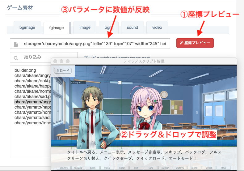 Character information is automatically loaded after you run a preview and pass through a definition like [chara_new].